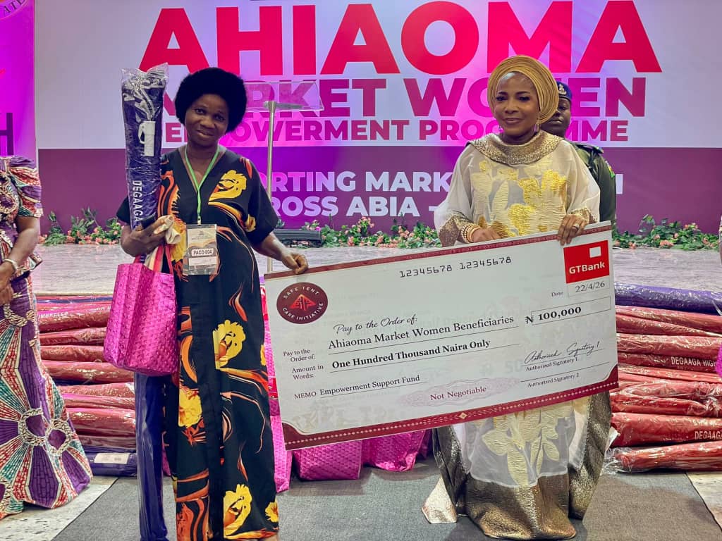 The Wife of the Governor of Abia State, Mrs. Priscilla Chidinma Otti, has reinforced her commitment to grassroots transformation with the launch of the Ahiaoma Market Women Economic Empowerment Programme—delivered through her Safe Tent Care Initiative, a platform dedicated to advancing the welfare, protection, and economic stability of women and vulnerable groups.