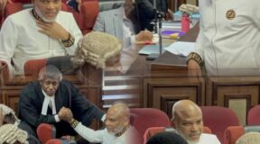 Akeni alleged that the acting INEC boss orchestrated “a brazen assault on Nigeria’s democracy” by inviting Abure to a meeting with the leadership of 18 registered political parties last Tuesday, despite a purportedly non-existent Supreme Court judgment in his favor.