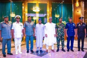 Air Vice Marshall S.K Aneke is Chief of Air Staff while Rear Admiral I. Abbas is the new Chief of Naval Staff.