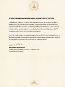President Tinubu has named General Olufemi Oluyede as the successor to General Christopher Musa, taking on the role of the new Chief of Defence Staff.