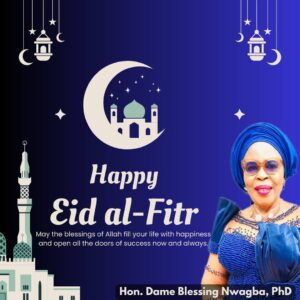 Hon. Dame Blessing Nwagba has warmly felicitated with Muslim faithful on the joyous occasion of this year’s Eid al-Fitr, marking the successful completion of the holy month of Ramadan.