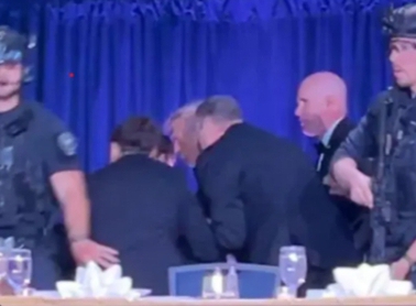 During the chaotic incident, tactical teams with guns drawn took position on the stage where Trump had been sitting during dinner before he was evacuated.