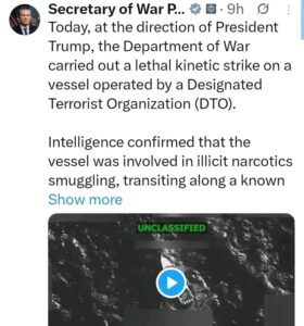 The Department of War emphasized that the operation forms part of President Trump’s intensified campaign against global drug cartels and narco-terrorist groups seeking to undermine U.S. national security.